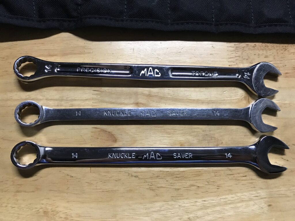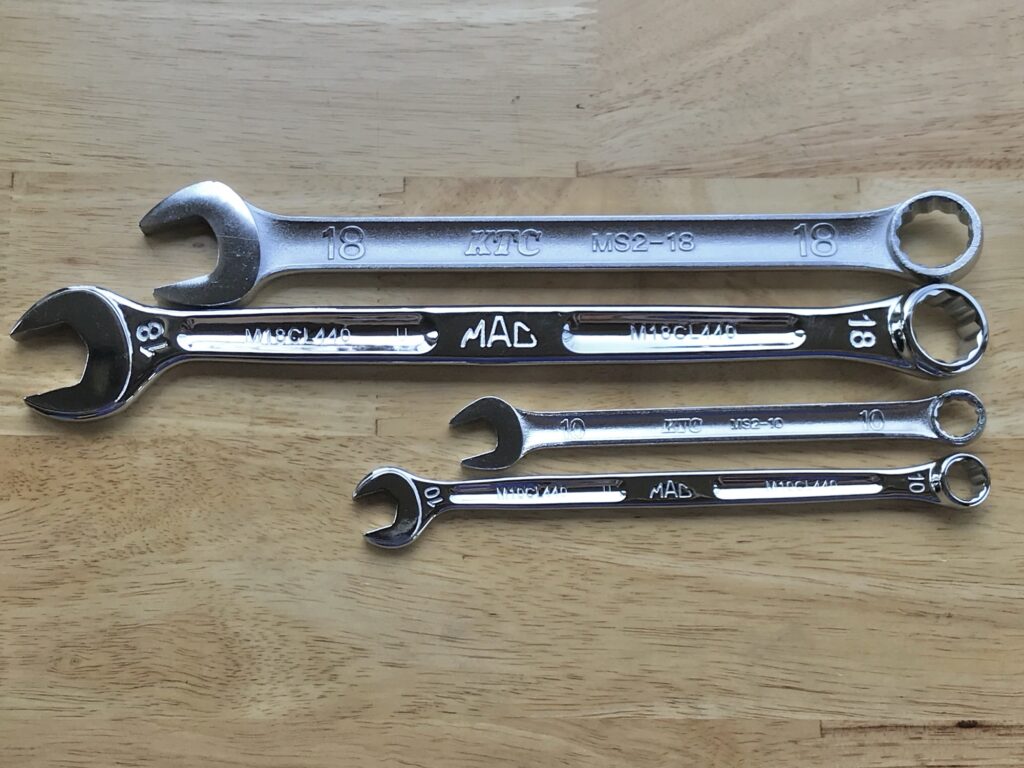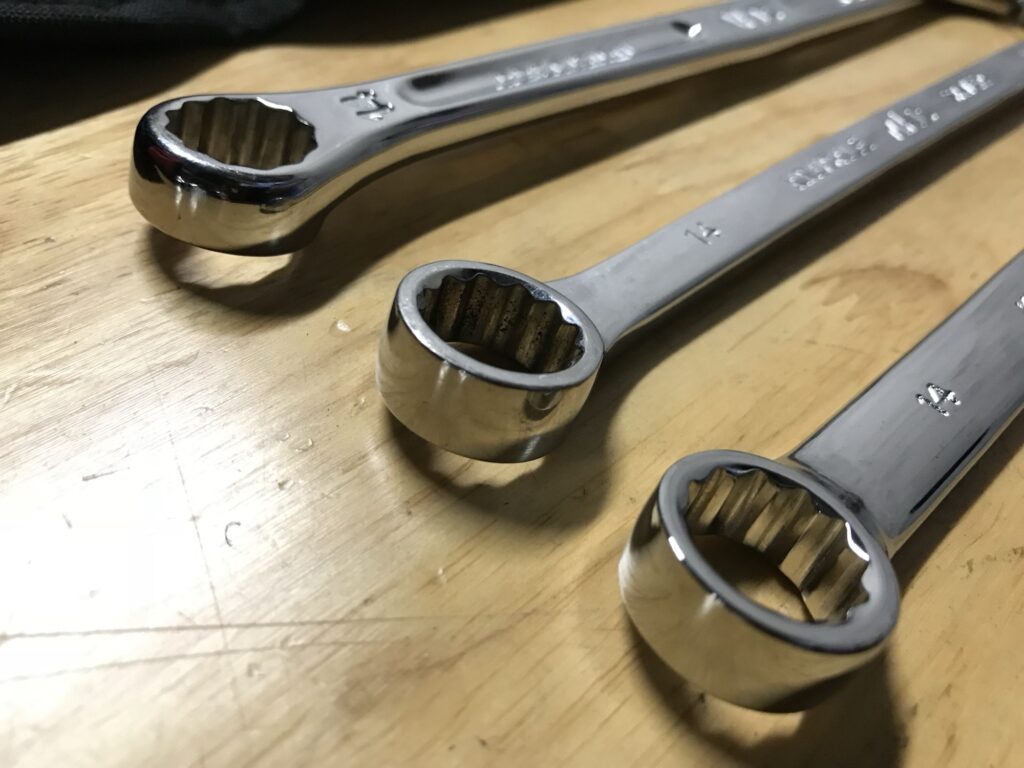工具にはまっていく過程で、ラチェットやソケットの次に欲しくなったのがレンチでして、定番ですが最初は8×10,14×17のメガネレンチを買いました。