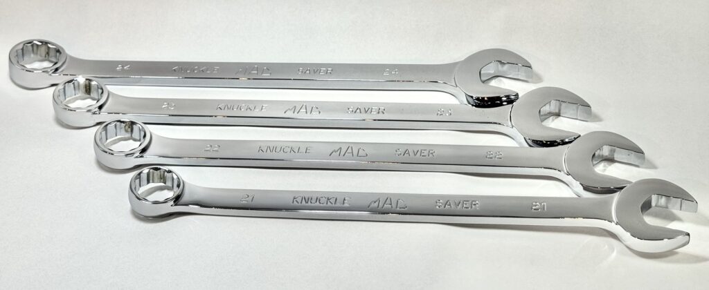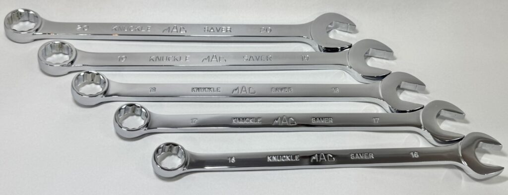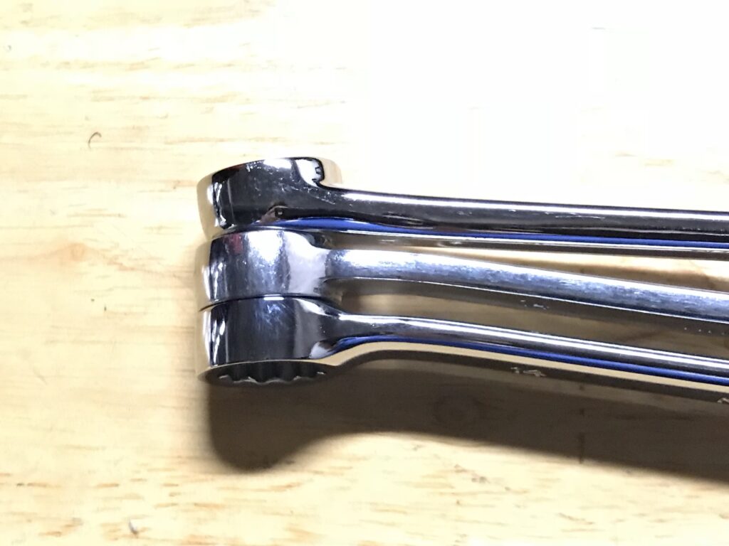 車の整備をしていると、どうしてもアクセスが難しい場面に出会うときがあります、そうしたときに立ち上がりの形状が違うメガネ部が助かったりもしますし、種類は多いほうがいいです。