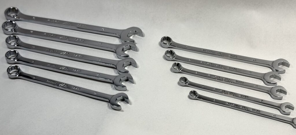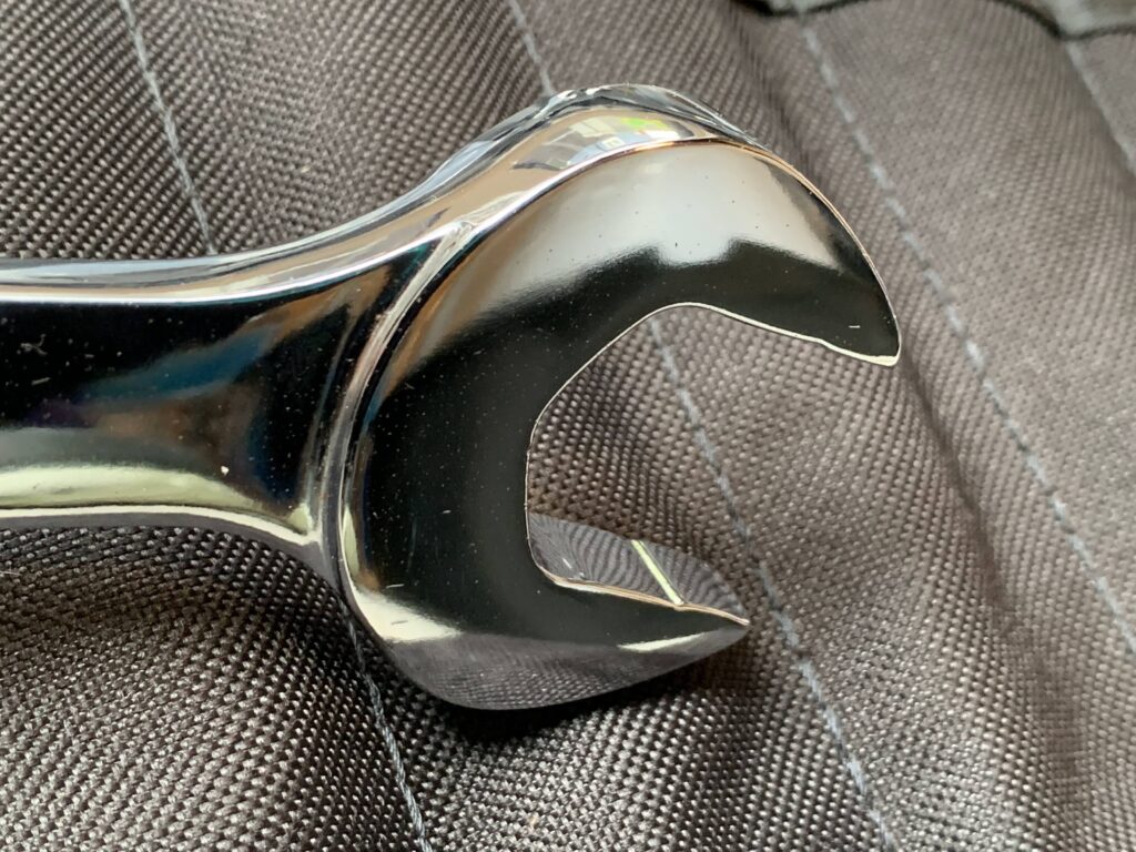 私の好きな工具の種類の一つであるコンビネーションレンチは、スパナ(オープンエンド)とメガネ(ボックスエンド?リング?場所によって呼び名が色々ありますね)が一本になっていて、作業性も見た目も最高なハンドツールです。