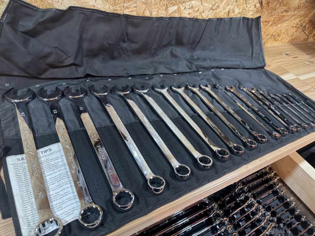 確かチラシに掲載されていた、レザーの収納袋付きのセットで8,10,12,14の4本セット、これが初めてのコンビレンチでプレシジョントルク(OEM製品、made in Taiwan)でした。