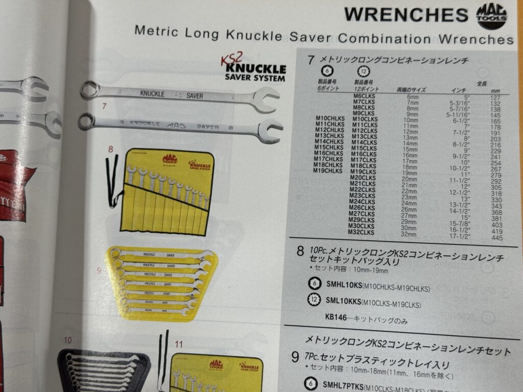 一番上は非ナックルセイバーですが、一番短いコンビレンチ(CS214MMR)